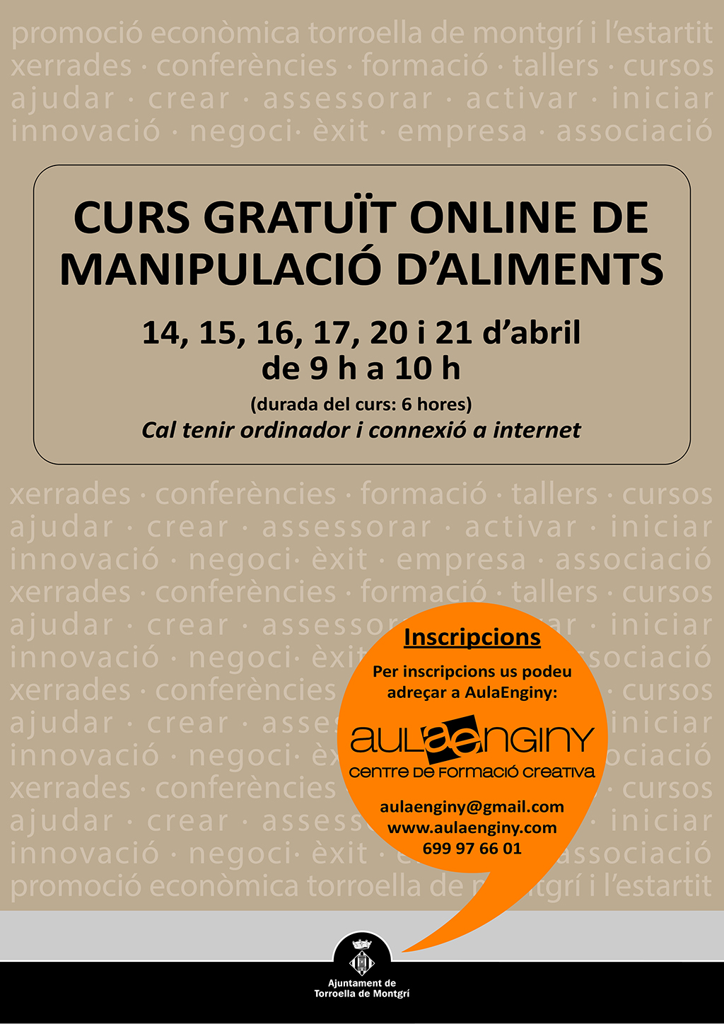 Inscripcions: Aula Enginy aulaenginy@gmail.com