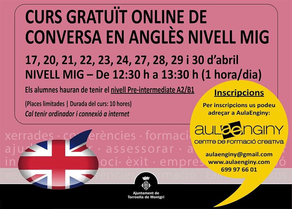 nscripcions al nivel mig: Aula Enginy curs virtual de conversa en anglès nivell mig