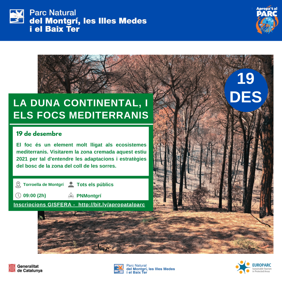 Agenda d'activitats de novembre i desembre, gratuïtes, organitzades pel Parc Natural del Montgrí Illes Medes i Baix Ter, per entitats del territori i empreses adherides a la carta Europea de Turisme Sostenible.