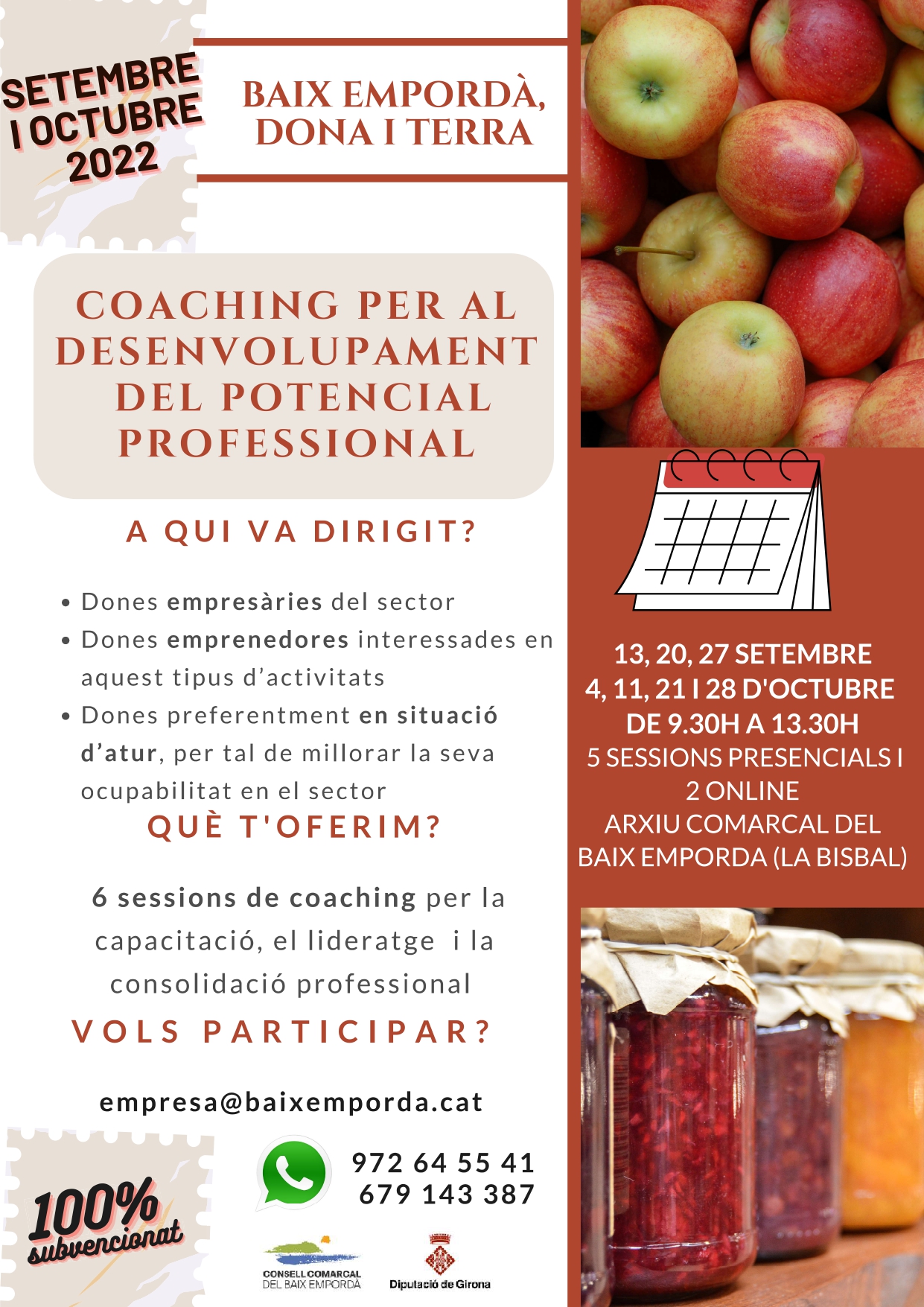 Inscripcions: empresa@baixemporda.cat / 972 64 55 41 / 679 143 387