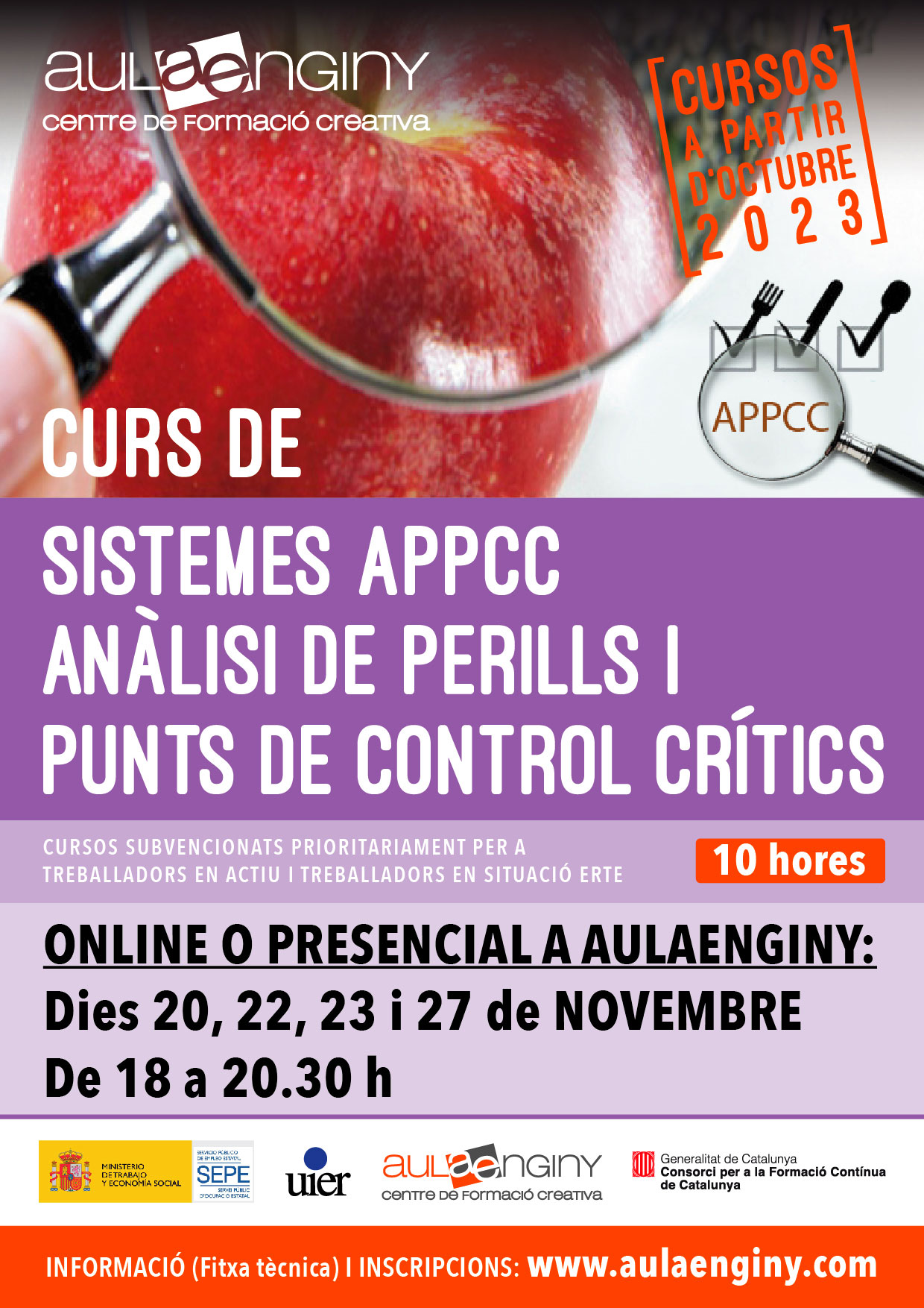 Inscripcions: www.aulaenginy.com / aulaenginy@gmail.com / 679.57.04.21