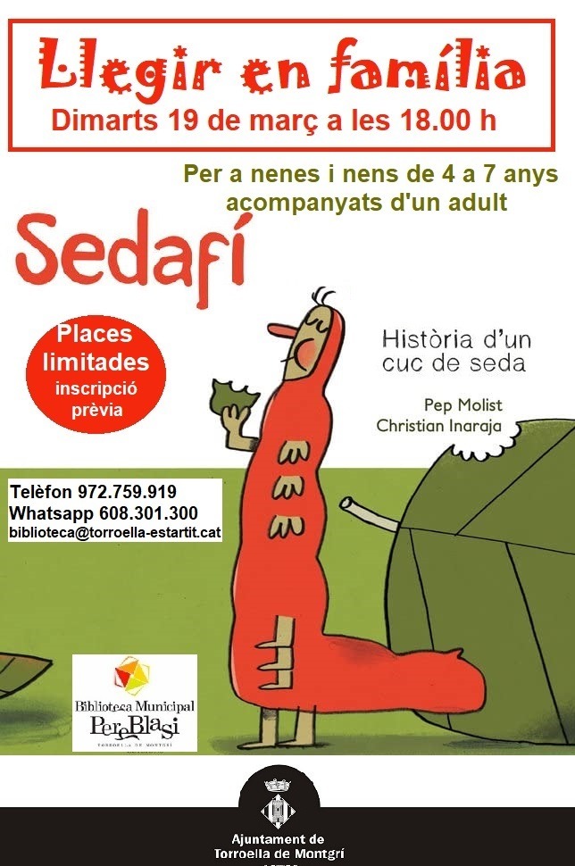 Llegim entre tots el conte Sedafí. Parla d'un cuc de seda molt especial. Una història adient a l'estació que ben aviat començarem, la primavera. Una activitat per conèixer històries noves i per aprendre a apreciar tot allò que aporta la lectura dels contes.