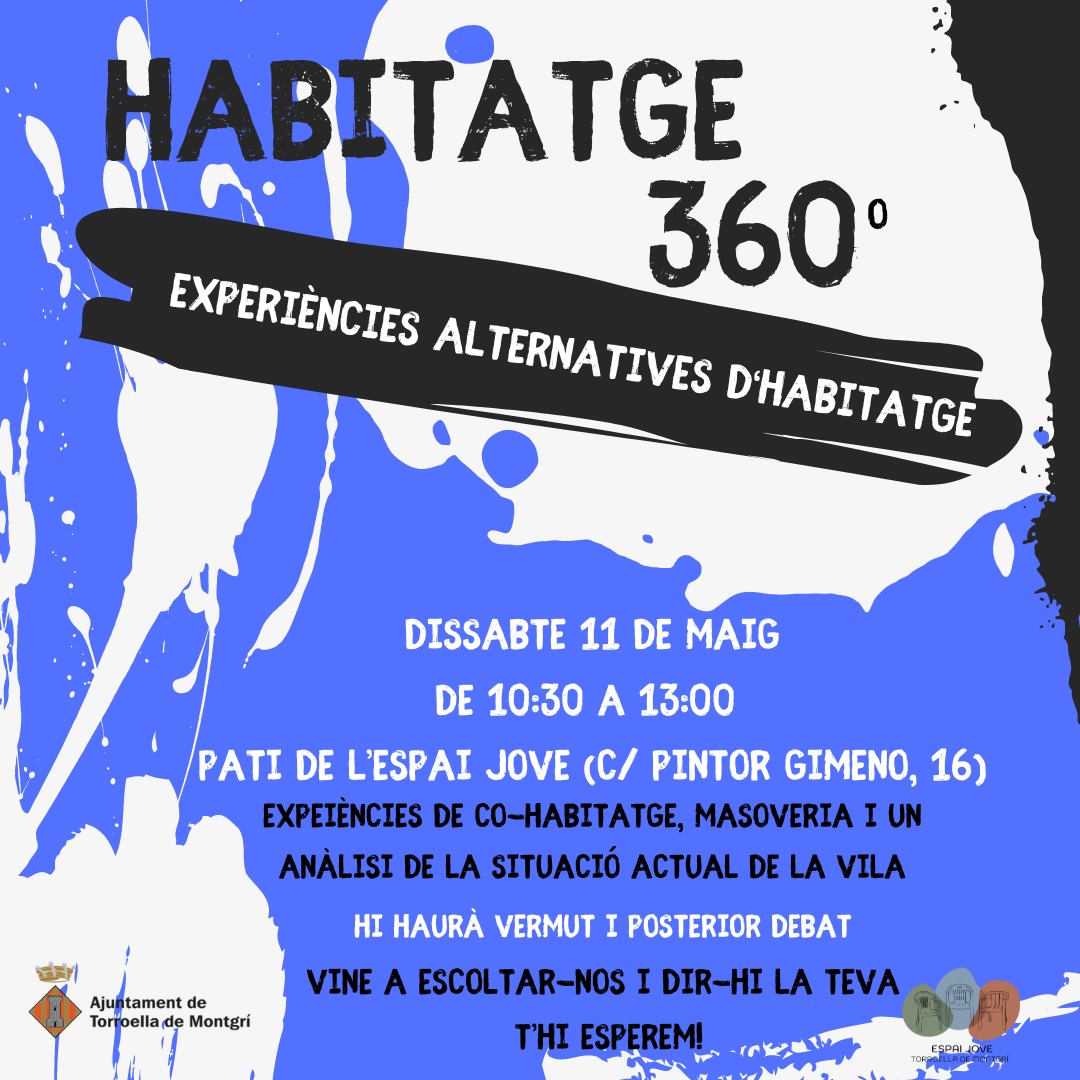 Dissabte 11 de Maig vine al pati de l'espai per parlar d'experiències alternatives d'habitatge.Ens acompanyaran persones que han viscut en diferents processos tals com el co-habitatge i la masoveria, i tindrem la possibilitat de parlar tots plegats amb diferents experts sobre quina és la realitat actual de la vila.