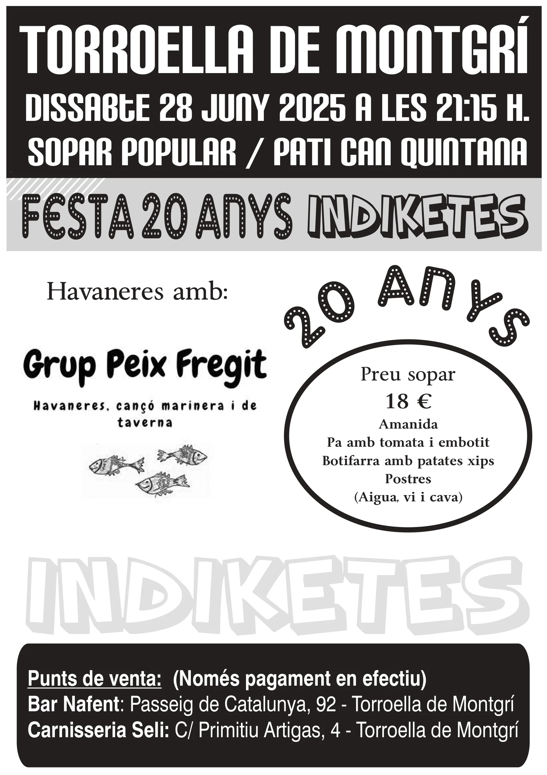 Punts de venda: Bar Nafent i Carnisseria Seli (només en efectiu).